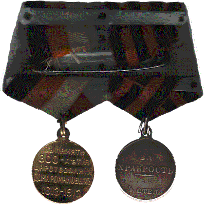 Medal for Bravery 3td Class & Medal of 300th Annyversary of the Romanov's on one montain block. $125.00
